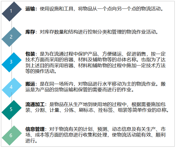 中國物流行業(yè)起步較晚,隨著國民經(jīng)濟的飛速發(fā)展,中國物流行業(yè)保持較快增長速度,物流體系不斷完善,行業(yè)運行日益成熟和規(guī)范。具體內(nèi)容包括以下幾個方面:用戶服務(wù)、需求預(yù)測、訂單處理、配送、存貨控制、運輸、倉庫管理、工廠和倉庫的布局與選址、搬運裝卸、采購、包裝、情報信息。
